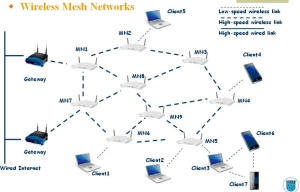A wireless mesh network is a wireless network made up of radio nodes organized in a mesh topology. Each node forwards messages on behalf of the other nodes. Mesh networks can “self-heal”, automatically re-routing around a node that has lost power.